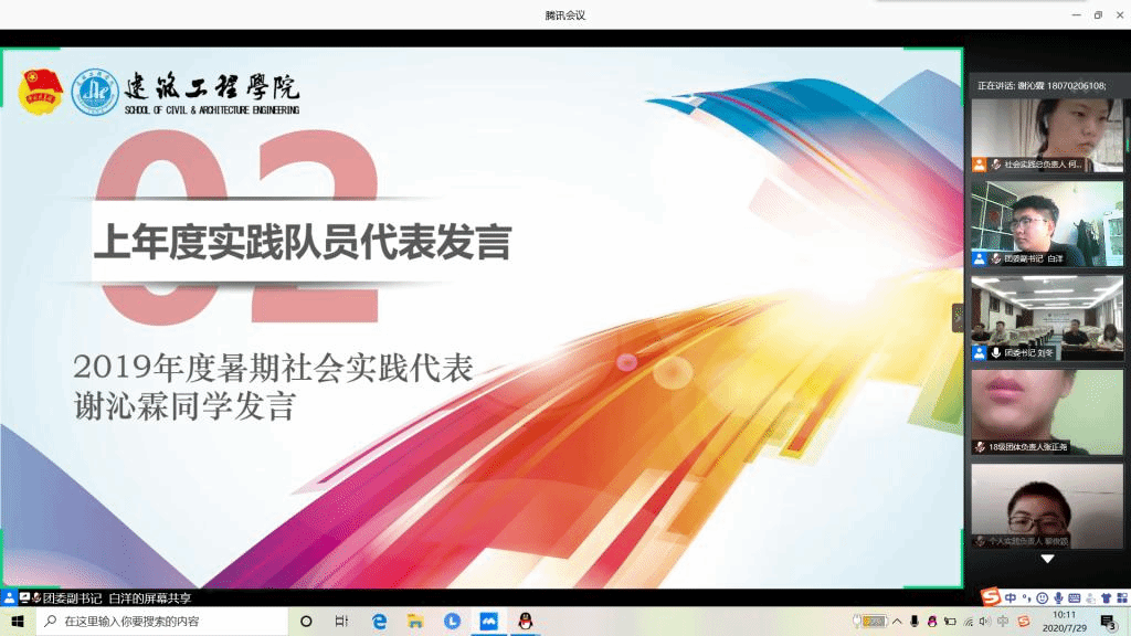 7月27日上午,2020年度暑期“三下乡”社会实践活动启动仪式在腾讯会议平台线上举行。公司党委副书记翟超、公司团委书记刘冬、暑期社会实践团队指导教师何鹏程、安春雨、徐慧子参加启动仪式,团委书记刘冬担任主持,学院暑期社会实践全体成员参加会议。