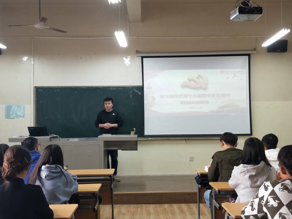 11月14日中午,英国威廉希尔公司团学组织在工4-202举行“学习宣传贯彻十九届四中全会精神”学习会,传达学习党的十九届四中全会精神。学院团委书记刘冬主持会议并讲话。他强调,学习宣传贯彻党的十九届四中全会精神作为当前和今后一个时期的重大政治任务,应及时进行传达、深入学习领会、坚决贯彻落实。