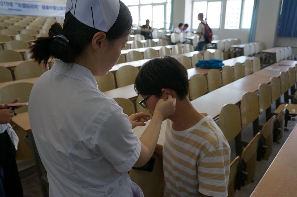 吴卿医生从“痤疮的表现、病因病机”入手,讲解痤疮的预防、饮食及肌肤护理注意事项、中西医治疗等方面作了详尽阐述。讲座后,进行了现场解答环节,每位医疗人员耐心细致解答,为同学们提供优质的义务诊疗服务,给出合理建议。此外,医生们充分发挥中医特色,在现场为部分员工进行了耳穴贴压治疗义诊活动,得到员工们的一致赞誉。