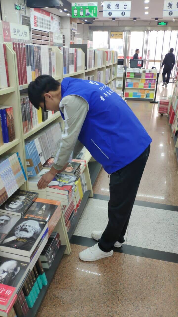 志愿服务中,大家整理了书架,将摆放错误的书籍摆放到位,让读者能更准确快速地找到他们想要的图书。此外,志愿者们还帮助图书大厦的工作人员做一些力所能及的事情,如在服务台帮助读者查阅所需图书位置、与工作人员一起站岗维持秩序确保安全等等。在此次活动中,大家都抱有很强的责任心,不偷懒不松懈 ,将书架整理的井然有序,充分展示了志愿者应有的勤奋认真、吃苦耐劳的精神风貌。同时,志愿者们在服务过程中都轻拿轻放,尽量不发出声响,以免打扰读者阅读,尽自己所能维持安静的阅读氛围。不时有读者过来寻求志愿者的帮助,志愿者也都尽职尽责地为读者寻找他们所需要的书籍,这些都是志愿服务精神的体现。