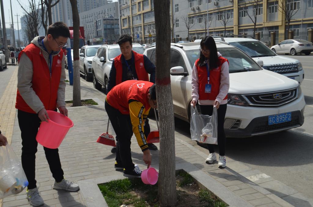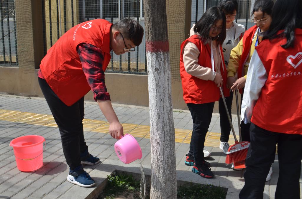 在3.12植树节当天,青年志愿者协会组织志愿者在校区东门外对道路两旁的行道树进行了爱护浇水活动,并对树周围的垃圾进行了清扫。志愿者们分工明确,清扫树坑、浇水,整个过程井然有序,气氛活泼热烈。活动过程中,志愿者们抱着满怀的信心认真负责地按照要求完成任务,不消极不怠懒,同心协力,默契配合,体现出志愿者务实负责的工作态度。活动现场,过往师生和路人也对志愿者的付出表达了赞赏。
