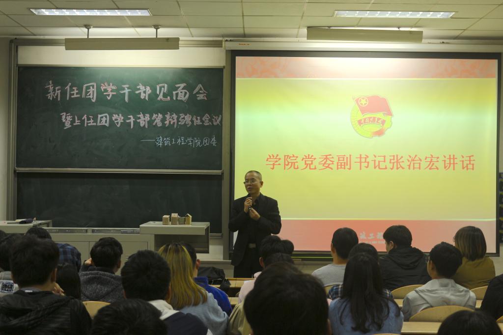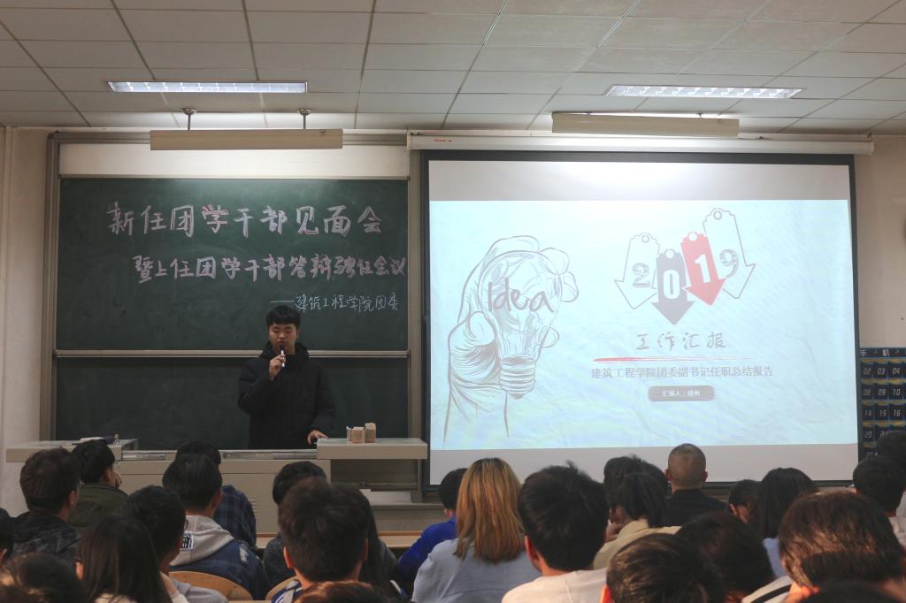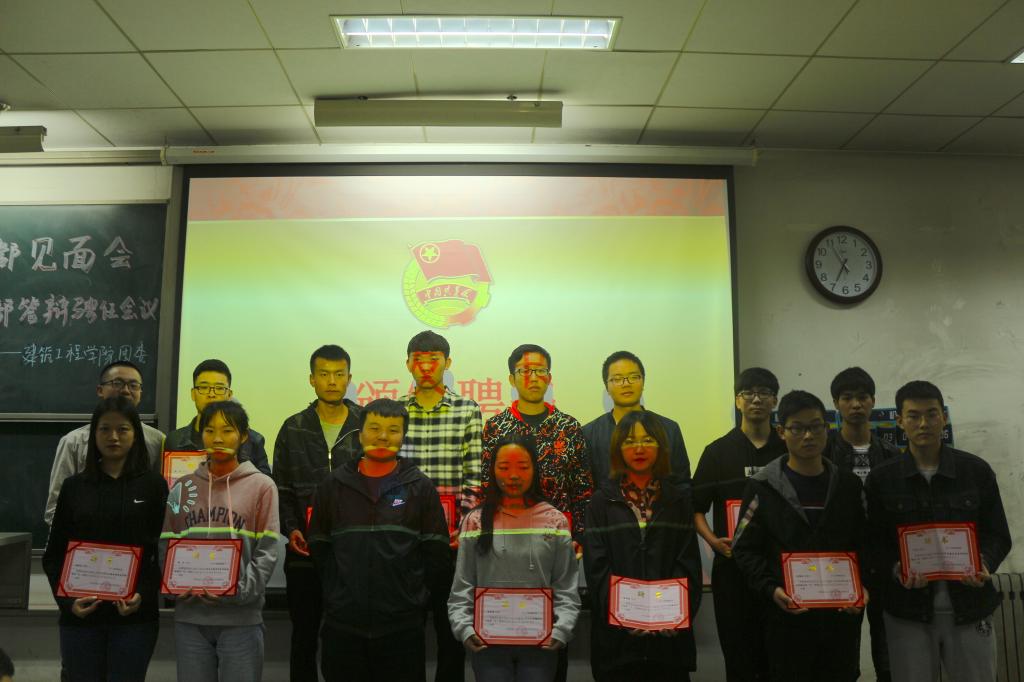 会上,上届团学组织各负责人分别总结了任期内的工作并谈了自己的感想,针对工作中发现的问题提出了建议。接着,与会老师为卸任的团学干部们颁发聘书,表达对其为学院团学工作辛勤付出的感谢。随后,安春雨宣读了新任团学干部名单,新任团委副书记陈新和员工会主席崔江伟分别上台作了表态发言,大家畅叙对团学组织未来工作的展望和规划。最后,张治宏在讲话中对上届员工干部的付出表示感谢,肯定了大家任期内所取得的成绩,并对新任员工干部的当选表示祝贺,给大家提出了几点希望:一是希望员工干部能有大局意识和服务意识;二是希望员工干部处理好集体与个人、学习与工作之间的关系,坚持在学习中工作,在工作中学习;三是希望大家能够继续增强集体荣誉感和凝聚力,不断创造建工学院团学工作新的辉煌。大家一致表示,此次会议极大地鼓舞了团学成员的工作热情,各部门对自己的职责更加明确,他们决心牢记奉献的宗旨,为把团学组织建设成为党团组织信赖、青年员工满意的优秀员工组织而不懈努力。