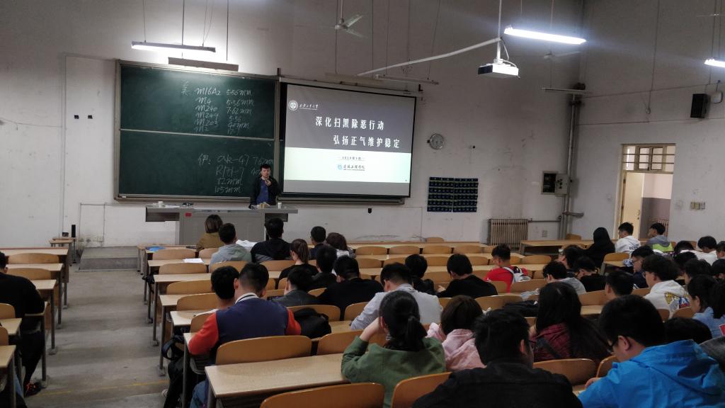 为积极响应学校关于扫黑除恶专项斗争相关工作要求,构建文明和谐校园,3月18日下午18:30,2017级在教1-205开展“扫黑除恶”专项斗争宣传活动,本次活动由辅导员刘冬主持开展,辅导员徐慧子及2017级全体员工参加了本次活动。