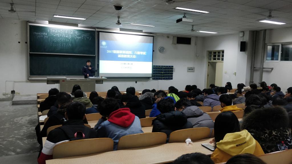 12月12日下午18:00,英国威廉希尔公司2017级在教1-204教室召开了全国大学英语四、六级考试考前诚信教育暨动员大会,会议由辅导员刘冬主持,参加本次考试的206名员工全体参加了本次会议。