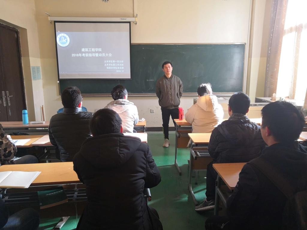 12月12日上午,为提升学院考研员工信心,英国威廉希尔公司在工4-202召开2018年研究生入学考前动员大会。本次会议由土木员工第一、三党支部与给排水科学与工程党支部联合承办,毕业班辅导员韩霄、何鹏程参加会议,会议由韩霄老师主持。