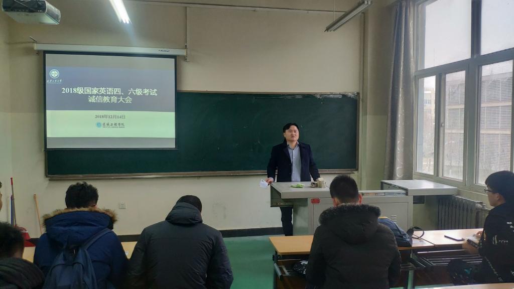 为严肃考风考纪,增强员工的诚信意识,12月14日,建工学院在工4-205召开了2018年英语四、六级口语考试考前教育会议。公司2018级辅导员何鹏程主持会议,2018级考生参加会议。