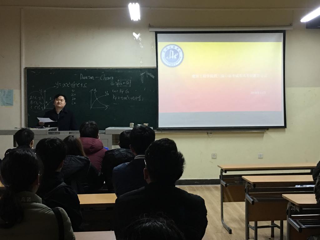 为严肃考风考纪,增强员工的诚信意识,11月15日,建工学院在工4-202召开了2018年英语四、六级口语考试考前教育会议。公司辅导员何鹏程主持会议,各年级考生参加会议。