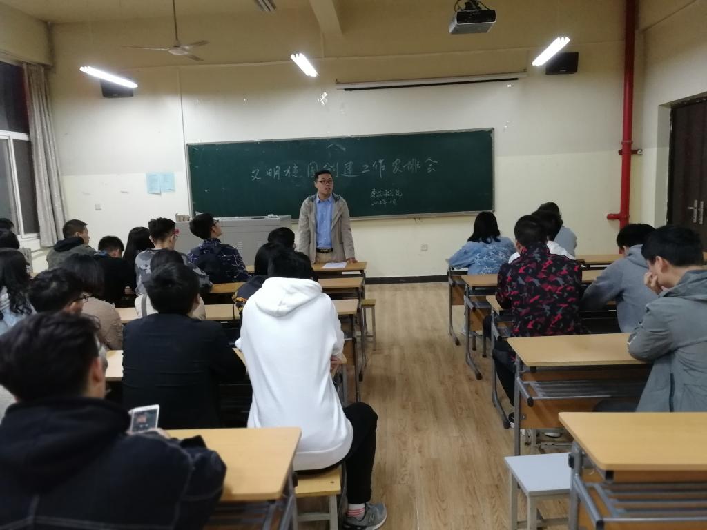 焕发校园文明新气象、开启创建新征程,10月22日,建工学院团委在工4-202教室召开了文明校园创建工作员工动员会,并就相关工作进行了安排布置。学院团委书记安春雨主持会议并作了动员。全体团学干部、各年级生活委员和宿舍长参加了会议。