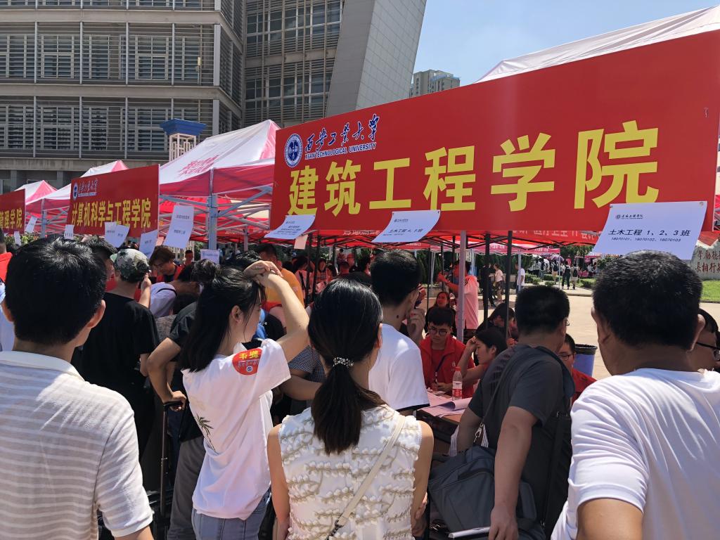 2018年9月3日是迎接新同学的第一天,迎新标语振奋人心,迎新工作点人头攒动,爱心服务车队穿梭往来,前来报到的新生络绎不绝,现场有条不紊,一个个忙碌的身影,一张张亲切的笑脸,构成了西工一道道亮丽的风景线。工作人员们仔细审查报道的相关资料并认真登记好相关信息;其他迎新人员负责为初来乍到的新生们分发报到须知、引导路线并介绍学校。公司还特地为新生及家长准备了“与建工学院初见留影”合影墙,受到了新生及家长的欢迎。