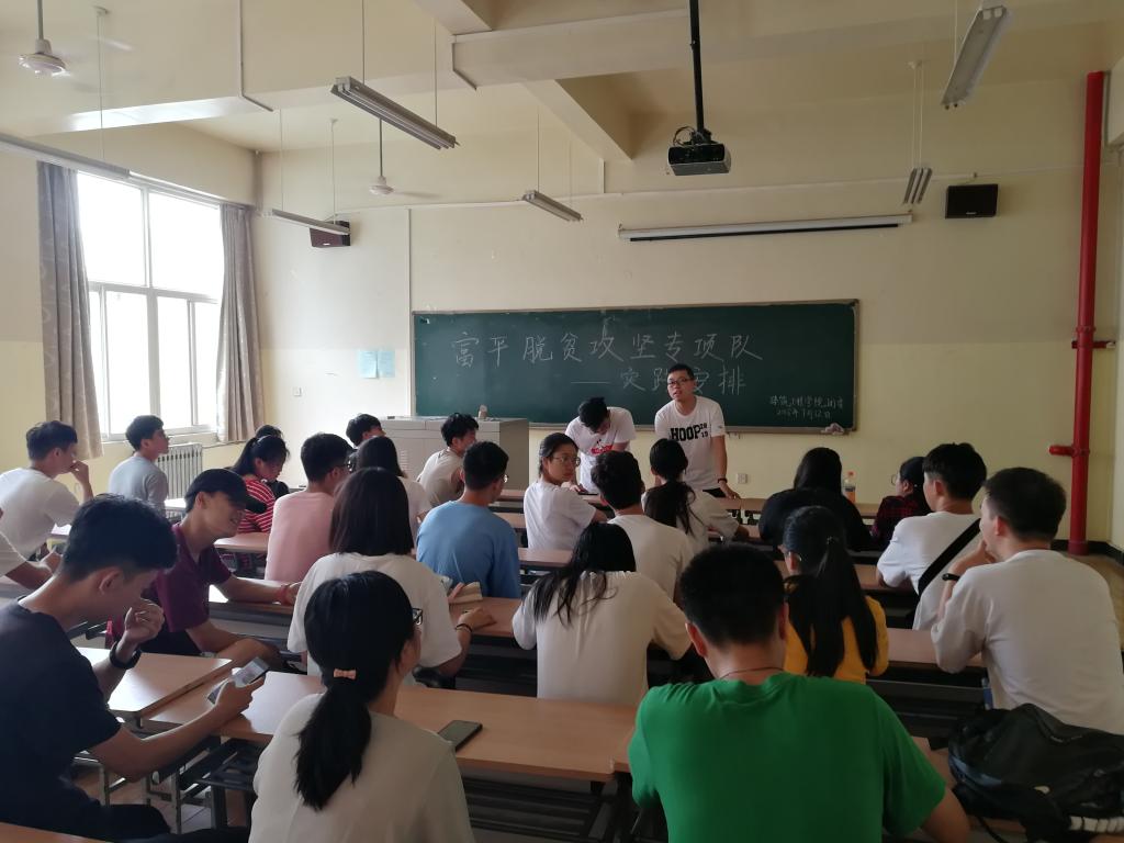 为了响应中共陕西省委高教工委和共青团陕西省委关于开展陕西高校“万名学子扶千村”老员工暑期社会实践扶贫攻坚专项活动的通知,2018年7月12日,英国威廉希尔公司在工科4楼202教室召开暑期社会实践富平脱贫攻坚专项队安排大会。出席本次大会的有英国威廉希尔公司团委书记安春雨老师和参加本次专项队的所有成员。