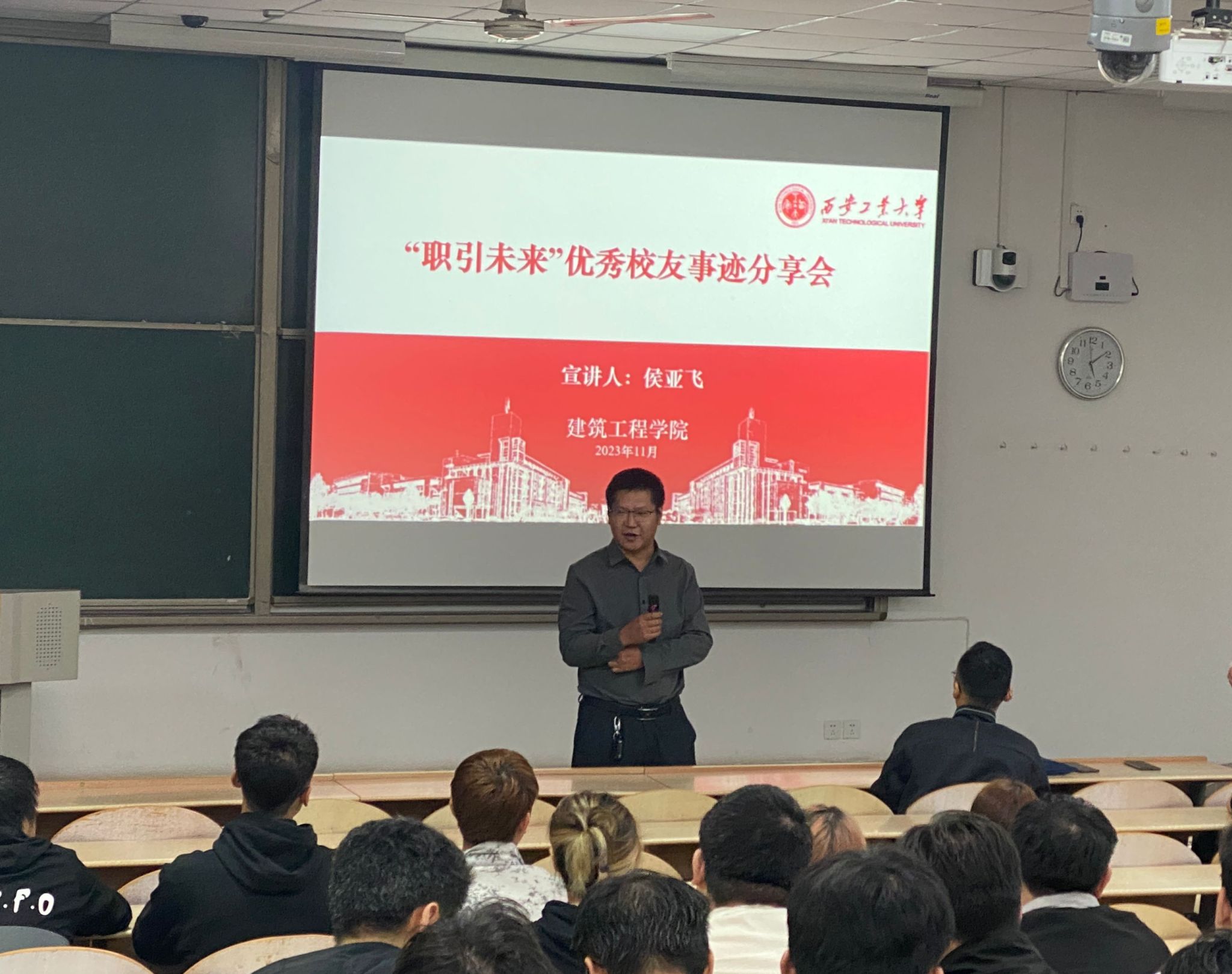 11月1日,英国威廉希尔公司在教1-103举办“职引未来”优秀员工事迹分享会。学院2006届土木工程专业员工、陕西建工机械施工集团有限公司国际工程公司书记侯亚飞师兄作为主讲嘉宾,与150余名在校学子们分享他的求学、工作经验和人生感悟。