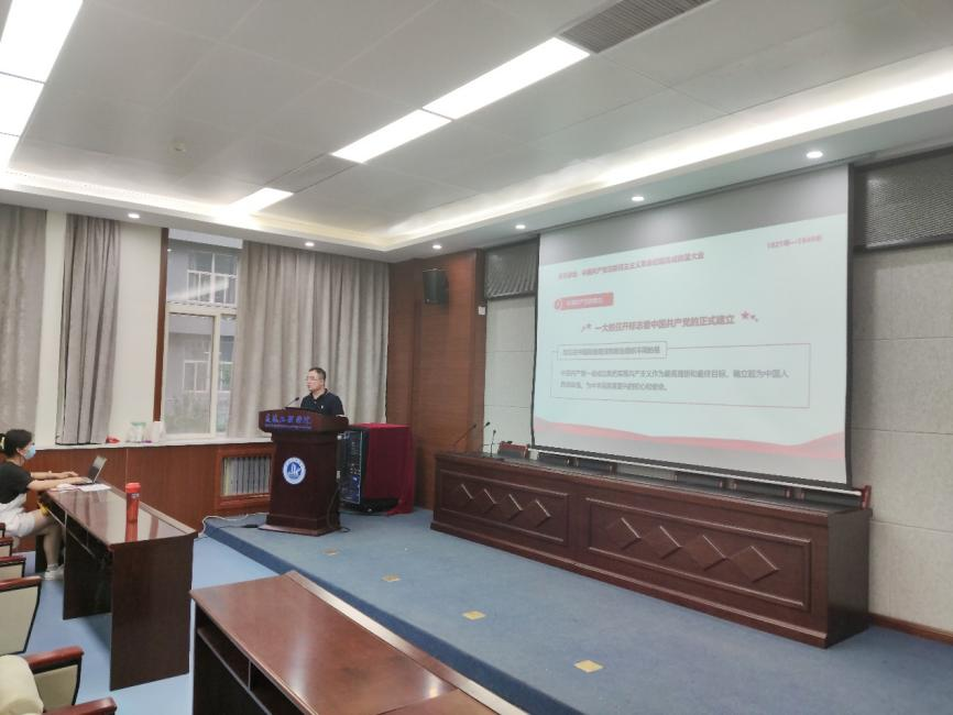 董元浩老师从党史学习教育目的——学党史,悟思想,办实事,开新局,引入课程内容,结合习近平总书记在庆祝中国共产党成立100周年大会上的讲话、中共中央关于党的百年奋斗重大成就和历史经验的决议等内容展开,将中国共产党的历史划分为新民主主义革命时期(1921年-1949年)、社会主义革命和建设时期(1949年-1978年)、改革开放和社会主义现代化建设时期(1978年-2012年)和中国特色社会主义新时代(2012年至今)四个时期,分别阐述了党在不同时期面临的重大困难和严峻考验、完成的主要任务和取得的重大成就。最后,他还从13个方面简要说明了党的百年奋斗的宝贵经验。